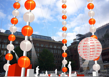 The marked spot between the balloons offers space for exhibitions, meetings, projections, screenings, festivals and manifestations for everybody. It can serve as a stage for various programms - open air cinema, lectures, concerts, fleamarket, playground, biergarden, cafe or lounge.