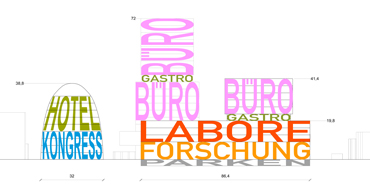 Thus, a locally based development is proposed that is based on an extremely flexible backbone - both in programming and phasing of the project, as well as in the further definition and development of the individual parts of the buildings - the concept is adjustable and ‚scaleable'.The high flexibility of the individual modules allows all forms of offices, laboratories and combinations, as well as open floor plans and spaces for special functions.